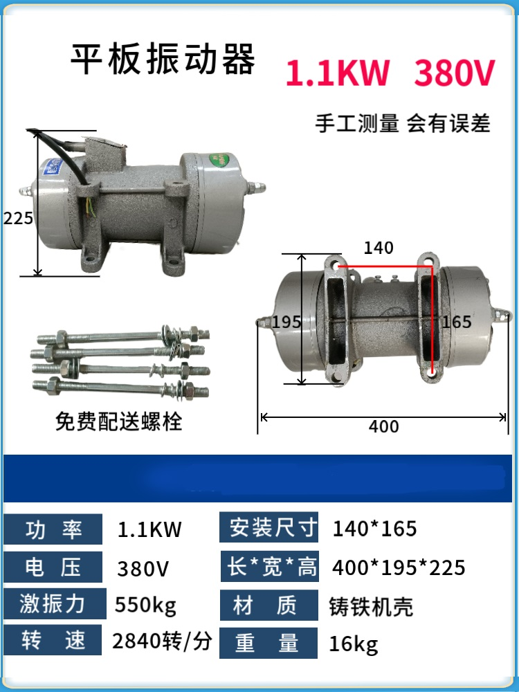 1.附著式混凝十振動器,是單,二相異步電動機轉子軸兩端各裝有一個與電動機功率相兒配的偏心塊而構成。